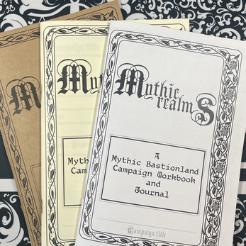 Mythic Realms is meant to be printed out on 10 sheets of letter paper, folded, and stapled. If there is interest, I'll also create a version sized for A4 paper.