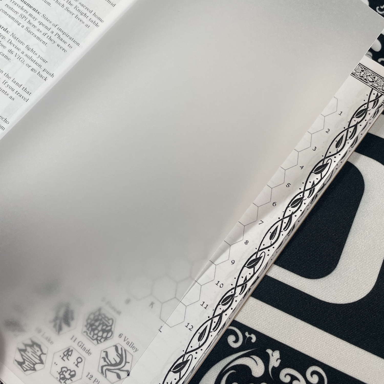 There's quick rules reference, sections for a realm map, character notes, and lots of pages for sites. This has been tested at the table to allow a referee to run Mythic Bastionland with just this, the core rule book, and a map for the players to use.